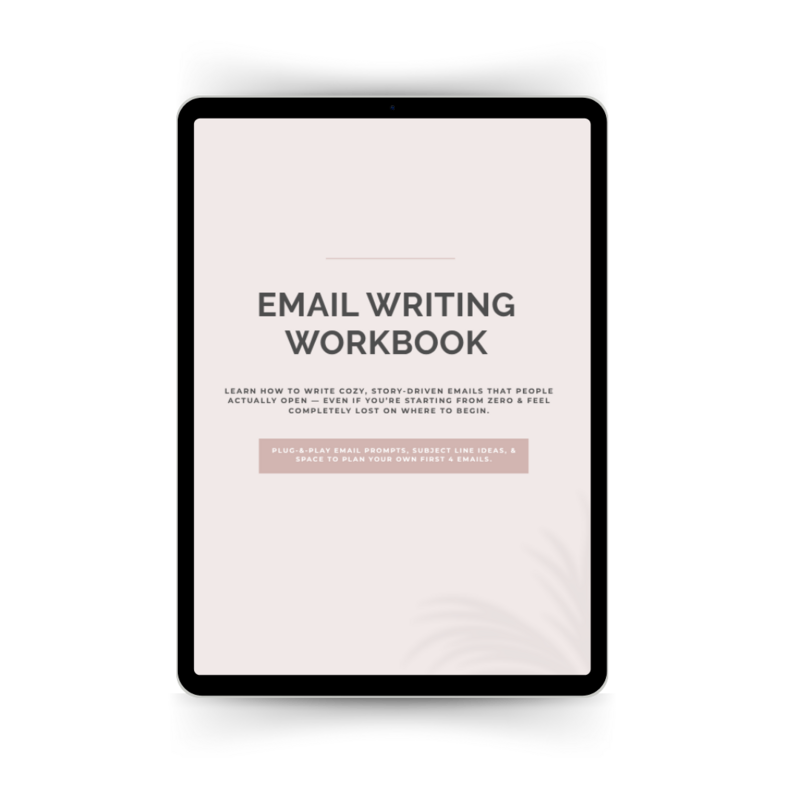 Get a ready-to-use workbook packed with my proven email prompts, scroll-stopping subject line ideas, and space to map out your first 4 emails so you can start sending confident, high-opening emails from day one.